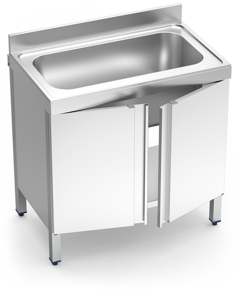 Sink unit in stainless steel with hinged doors 600 series 1 large capacity tank - Sink units with hinged doors - Stainless steel sinks - Fricosmos