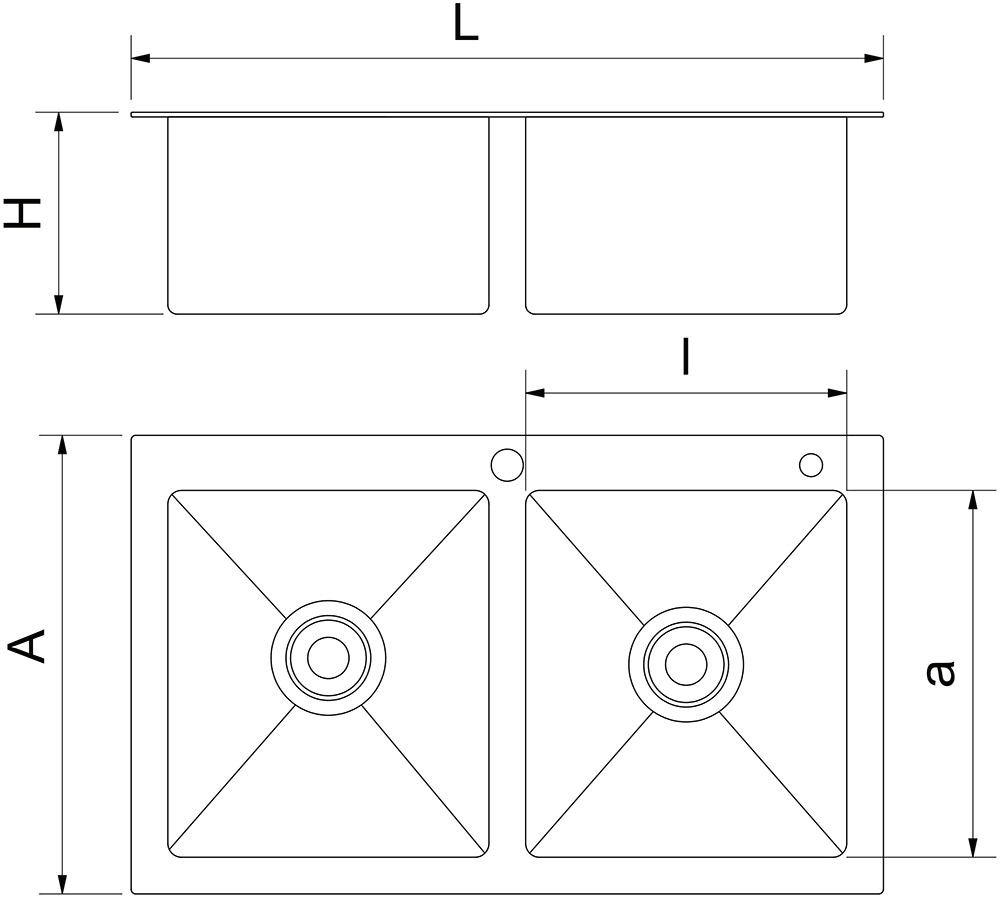 Fregadero 2C 820x450x220 mm. Serie Urban