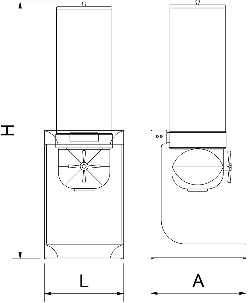 Distributeur par gravité pour aliments secs conçu pour un usage professionnel. Fabriqué en acier inoxydable avec réservoir en polycarbonate haute résistance, il permet un dosage propre et contrôlé sans contact direct avec les aliments. Idéal pour la vente en vrac et l’autoservice, il réduit les pertes et améliore l’hygiène ainsi que la présentation du produit.