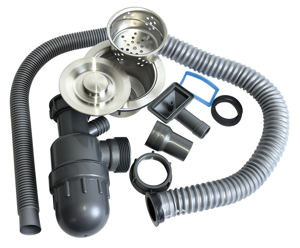 Válvula com ladrão, sifão e cestinha - Acessórios e peças de substituição para lava-mãos - Lava-Mãos em aço inox - Fricosmos